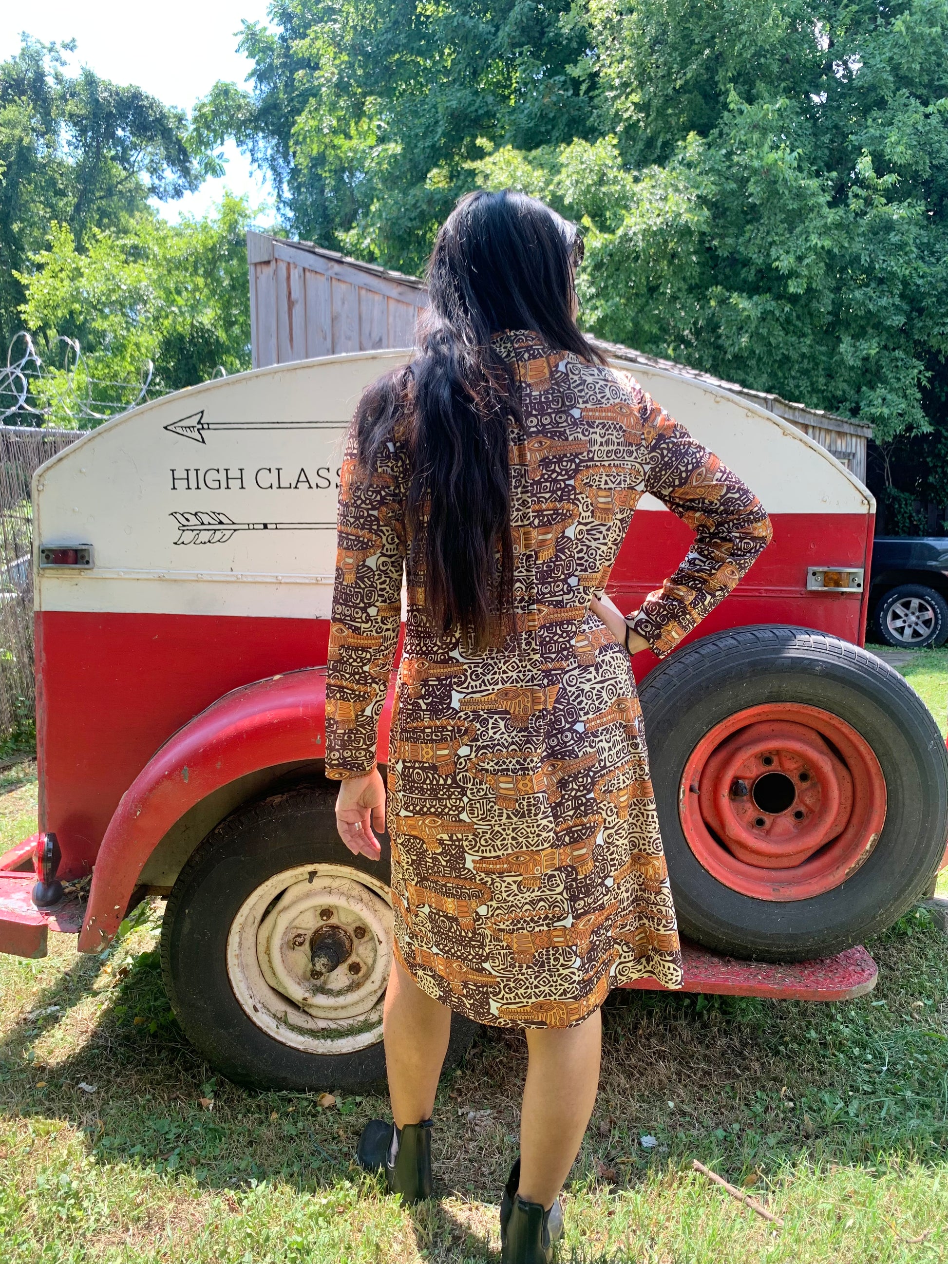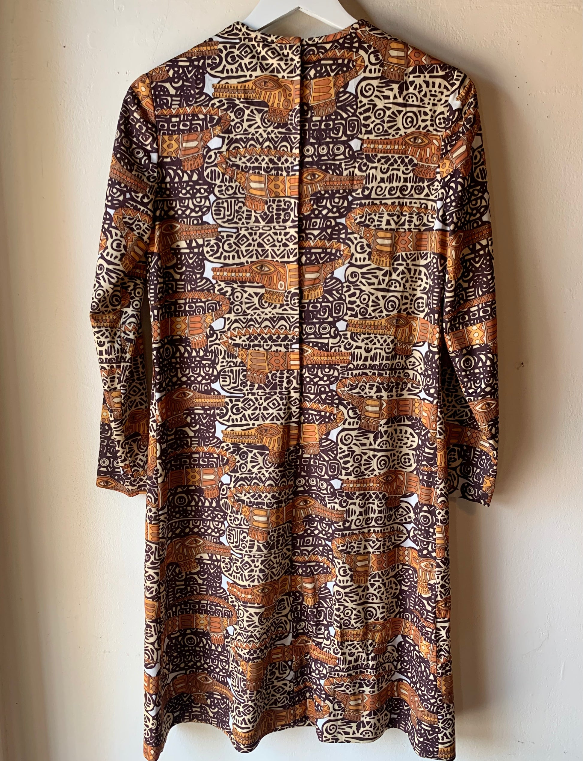 Very unique crocodile patterned dress. A super fun piece. In good condition with no flaws to note.