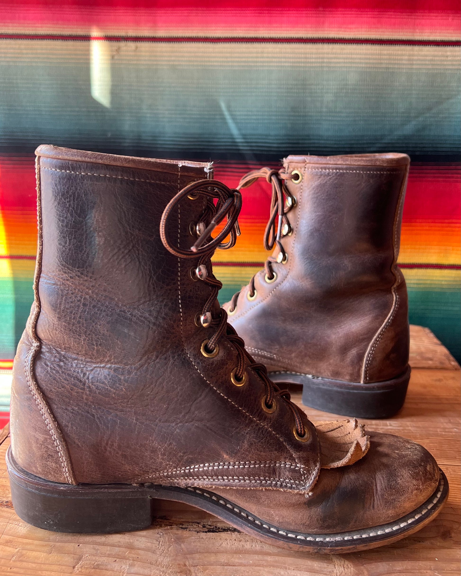 Classic pair of roper boots in brown leather. Marked size 6.5 but fit more like a 6.