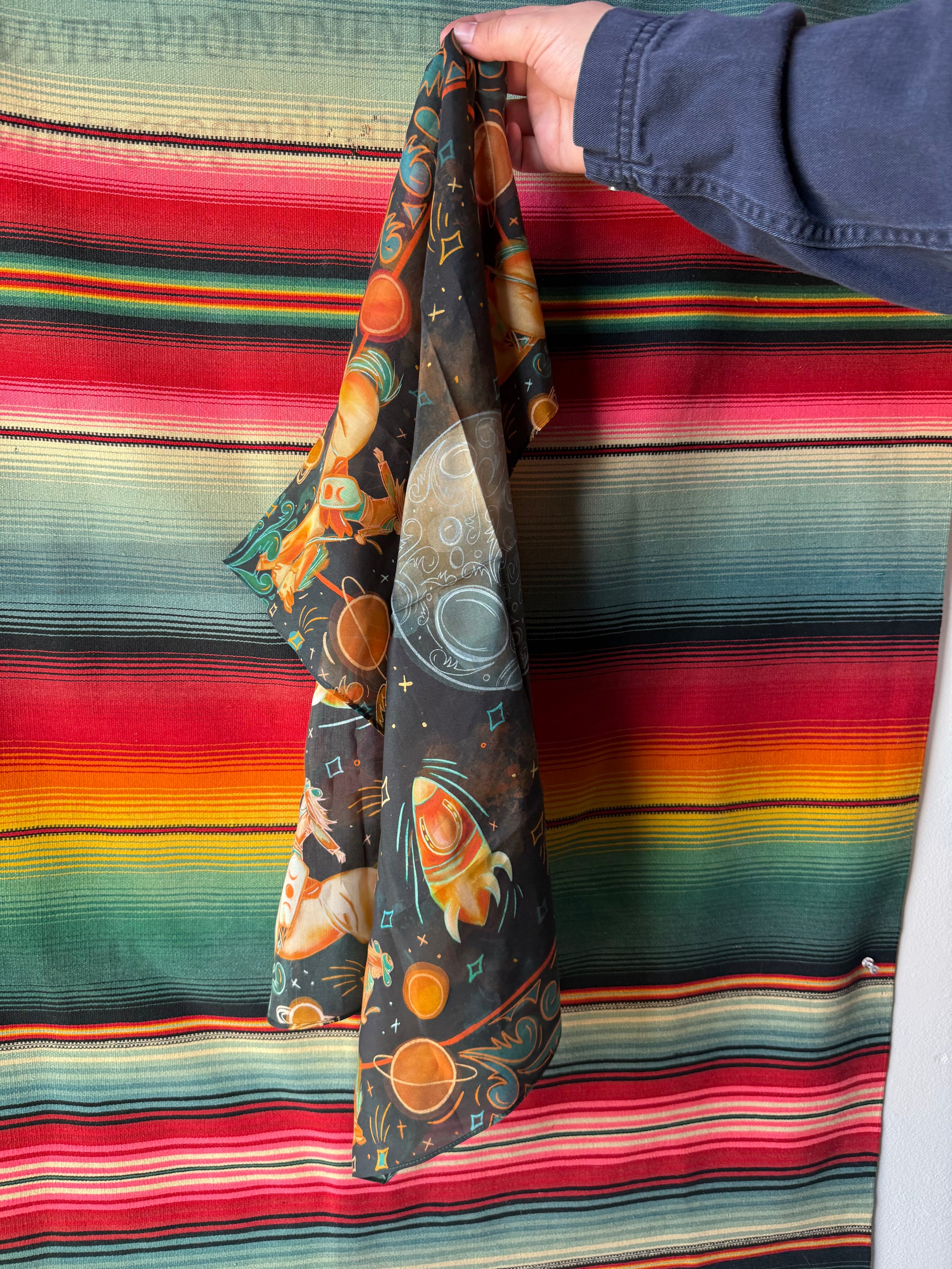 The perfect cowgirl accessory for year-round wear! This western silk scarf blends wild west spirit with effortless style. Tie it around your neck, in your hair, or on your bag for a pop of western charm!