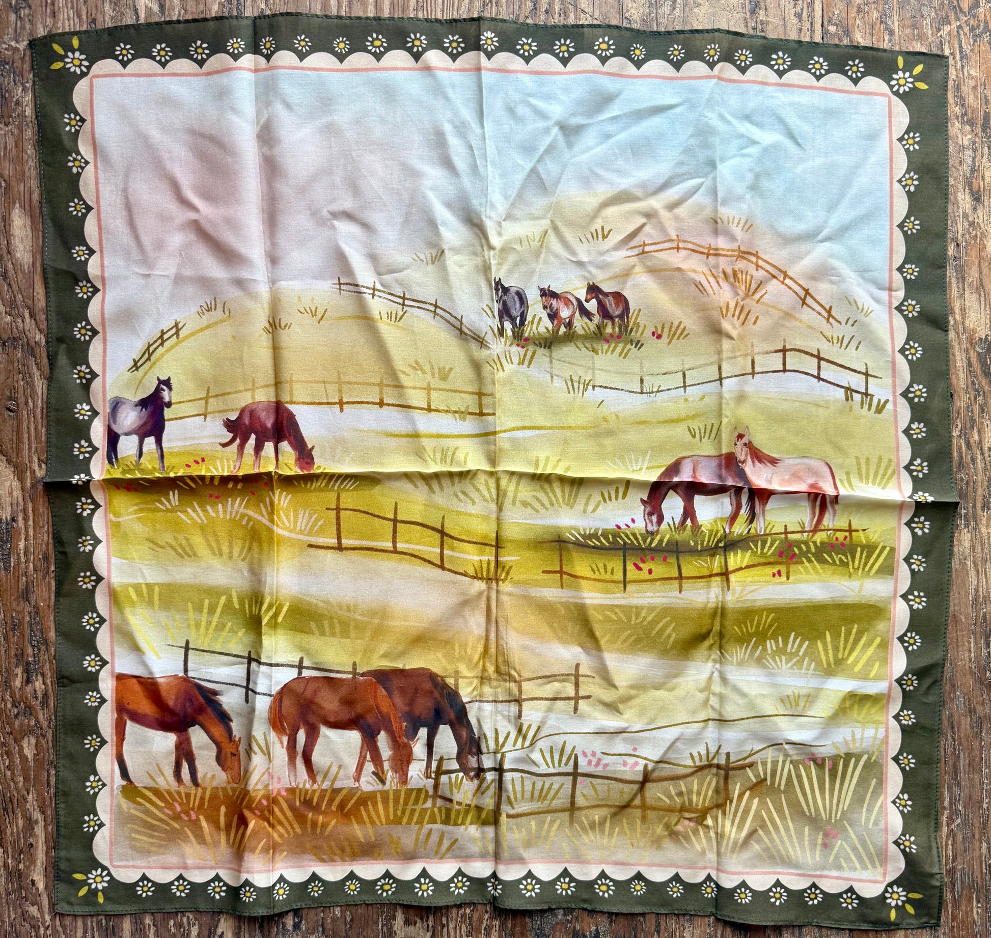 Grazing Pasture Western Cowgirl Horses Silk Scarf