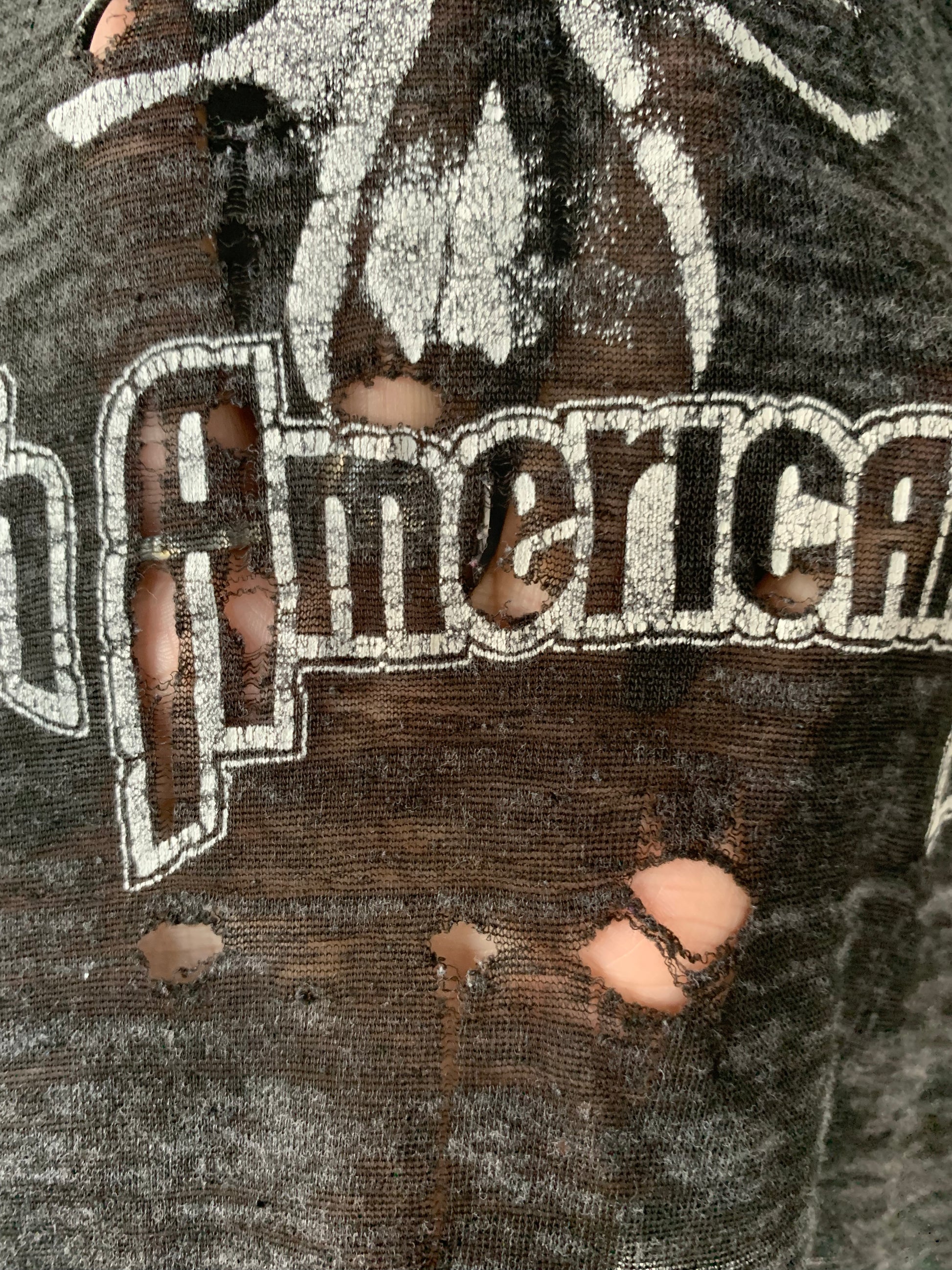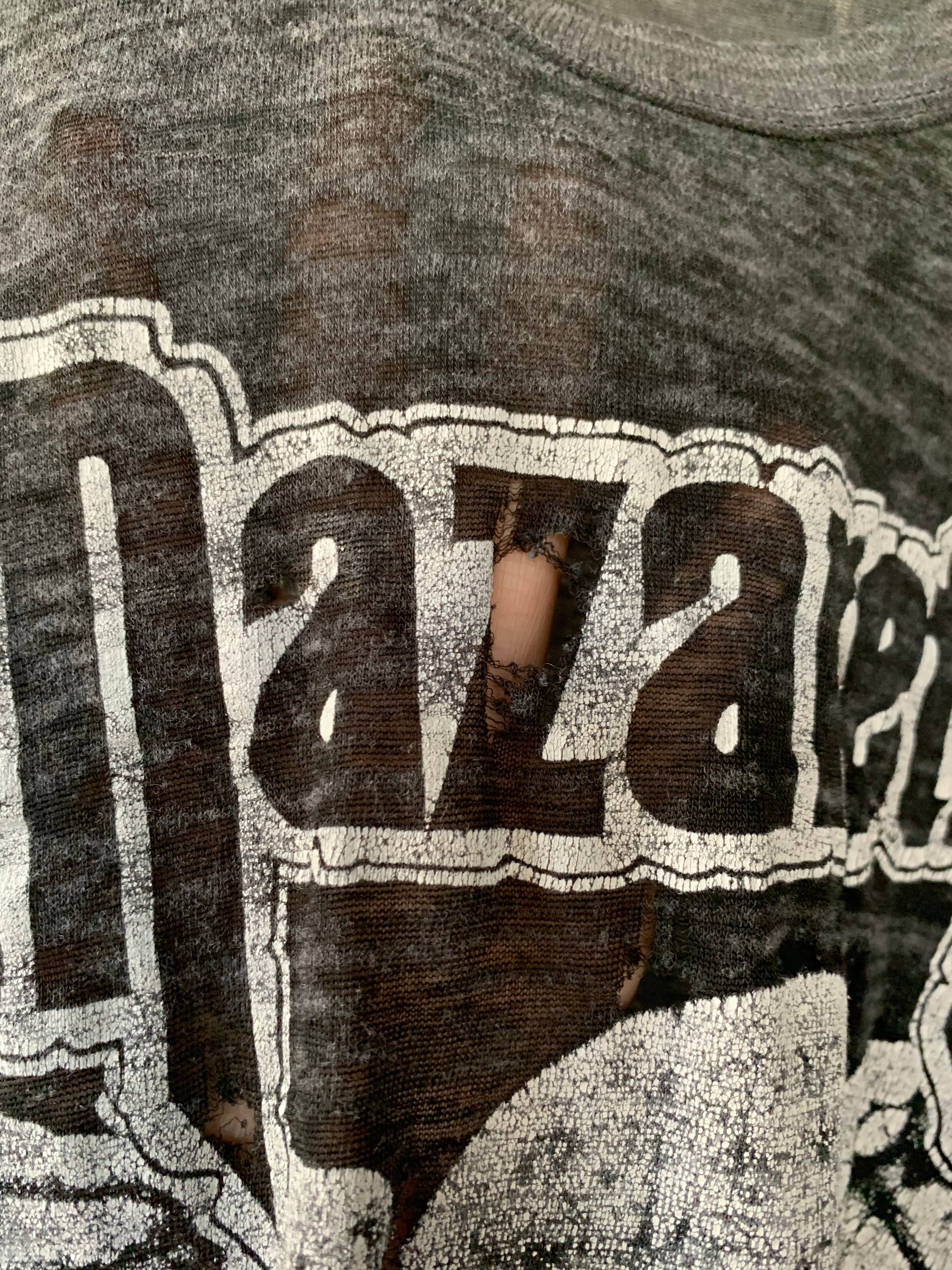 Beat up badass heathered grey Nazareth tour tee. Paper thin with multiple holes. Please view all photos for condition.