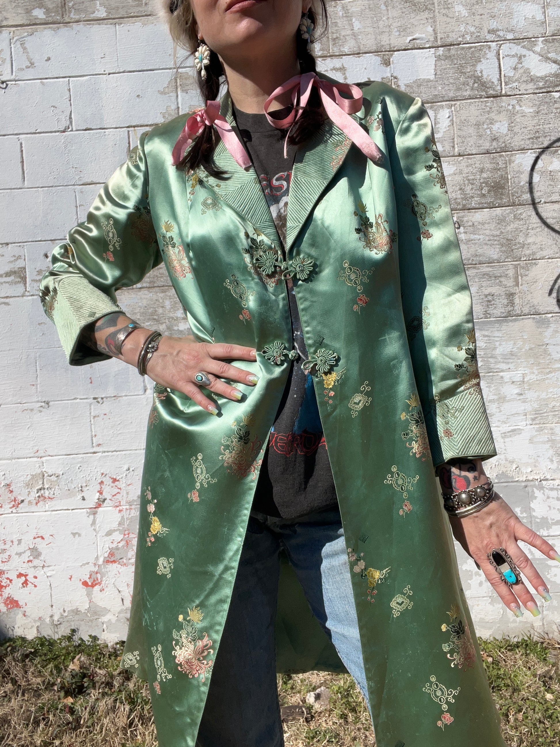 Vintage Mint Green Satin Duster Coat