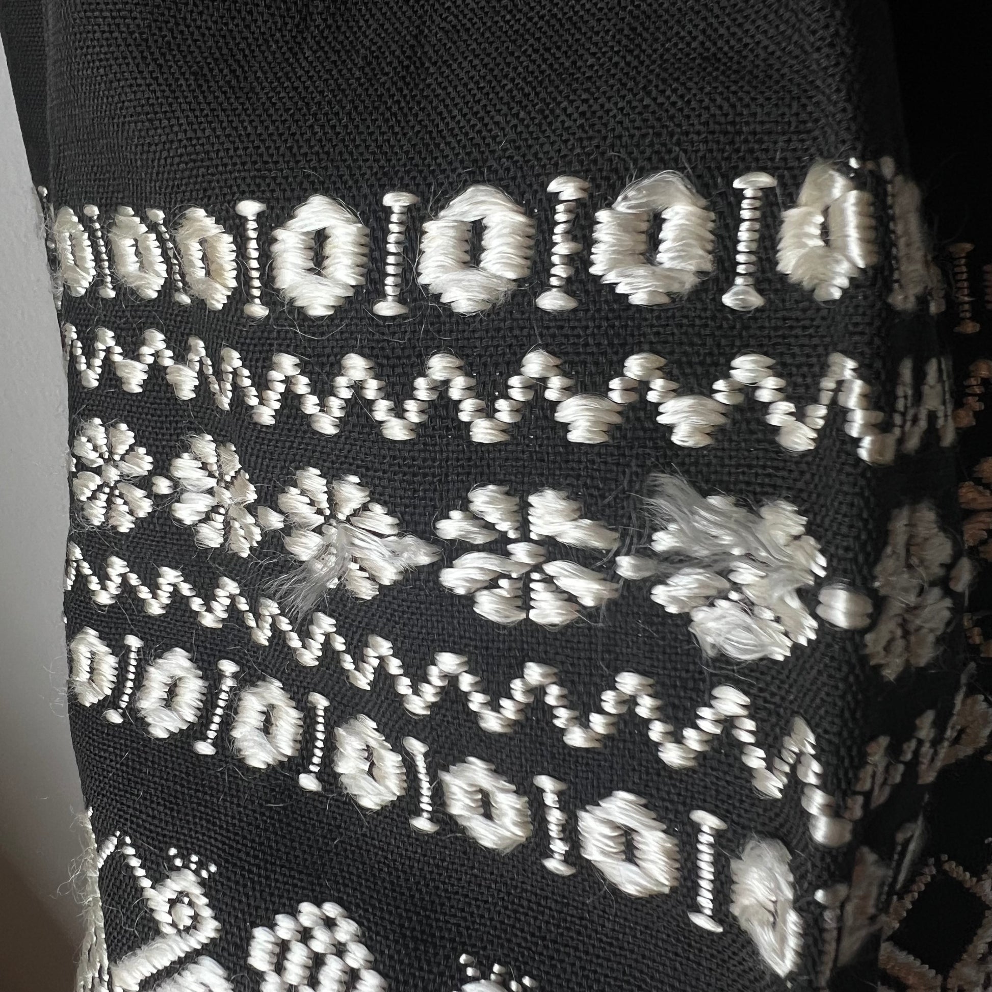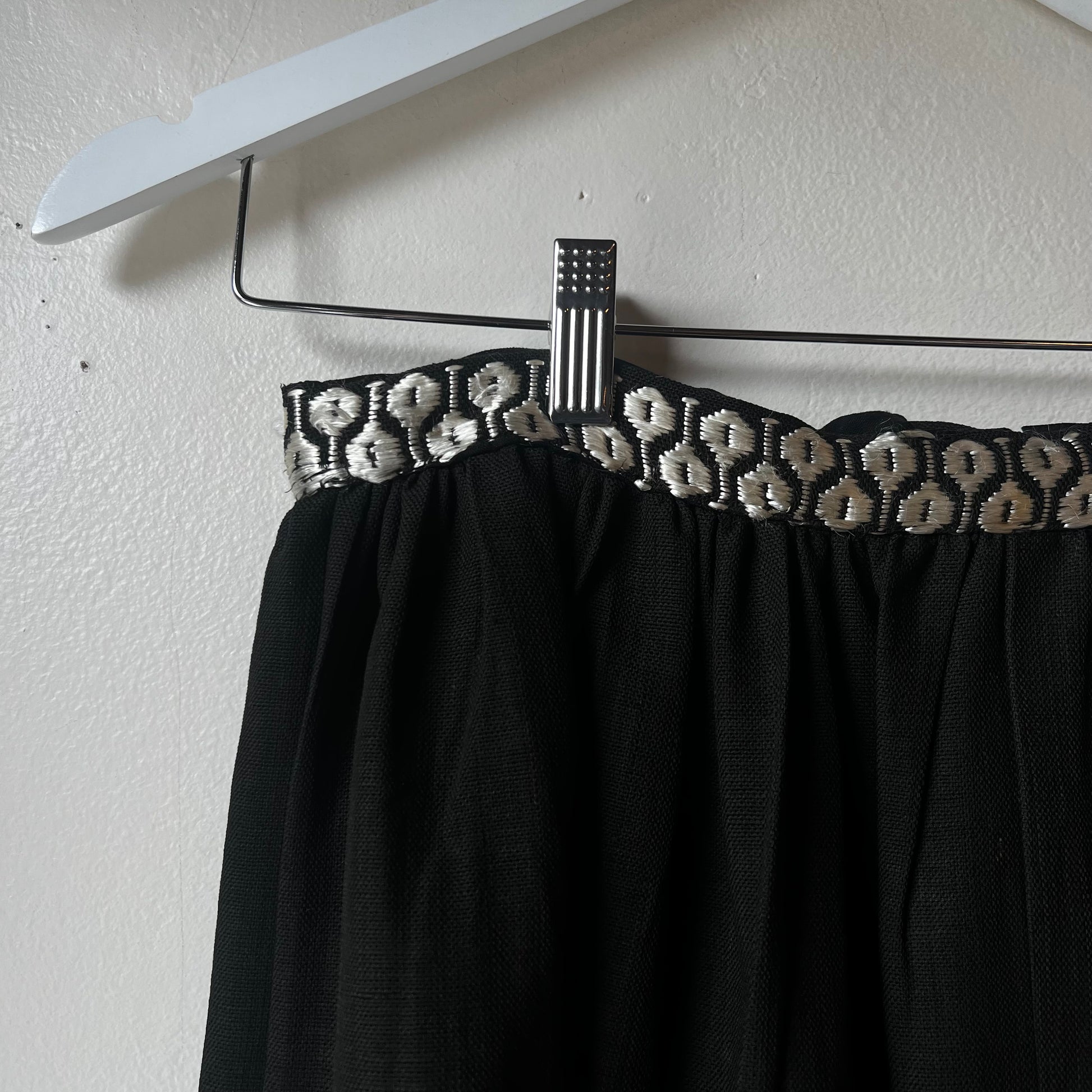 Vtg Black & White Embroidered Mexican Skirt 26"W