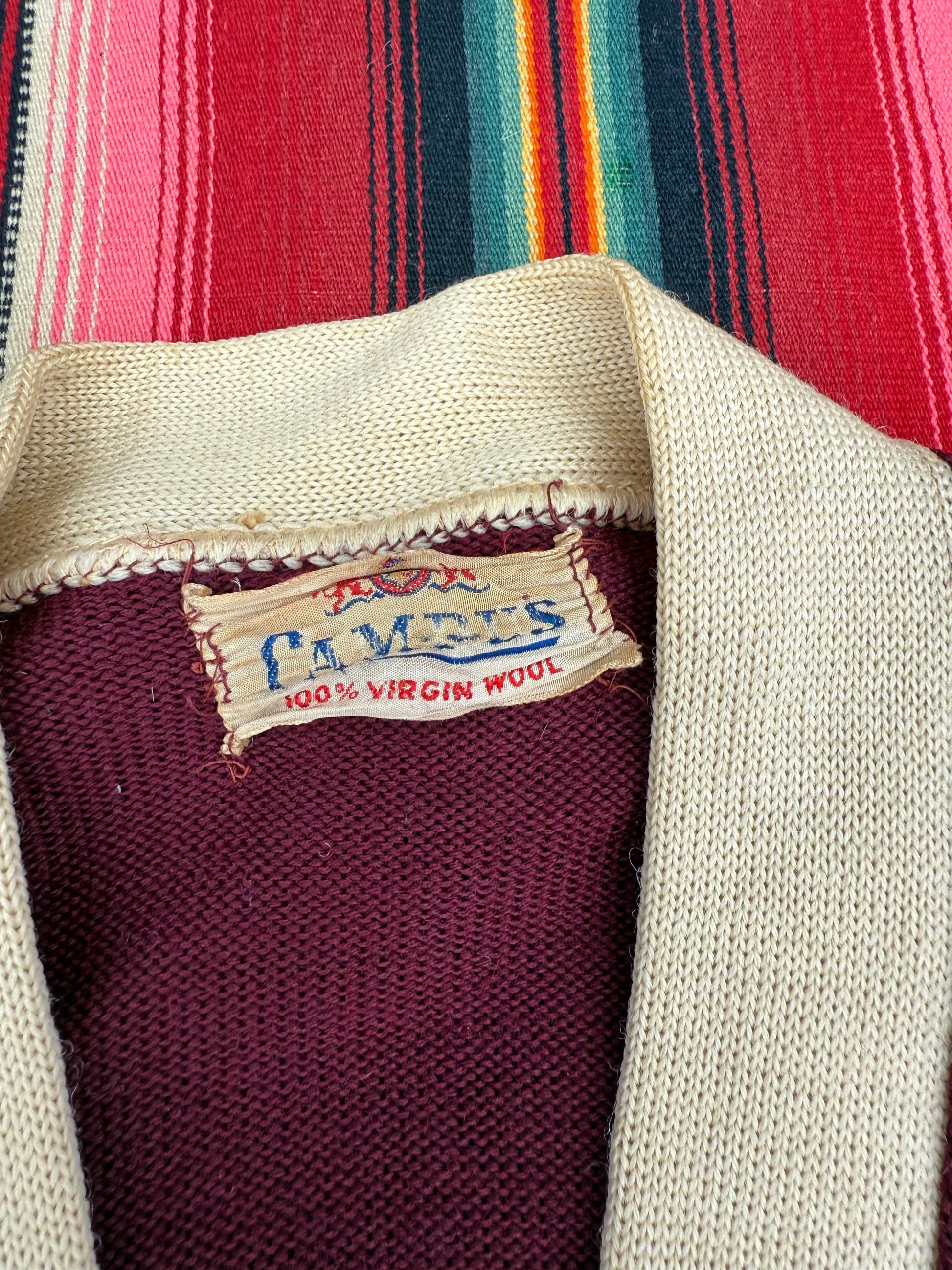 Show off serious old-school charm with this Vintage Martan High School Roller Club cardigan! Deep maroon wool with a standout cream “Roller M Club” patch, stars, and a “52” number patch — it’s got all the vintage style you could ask for.