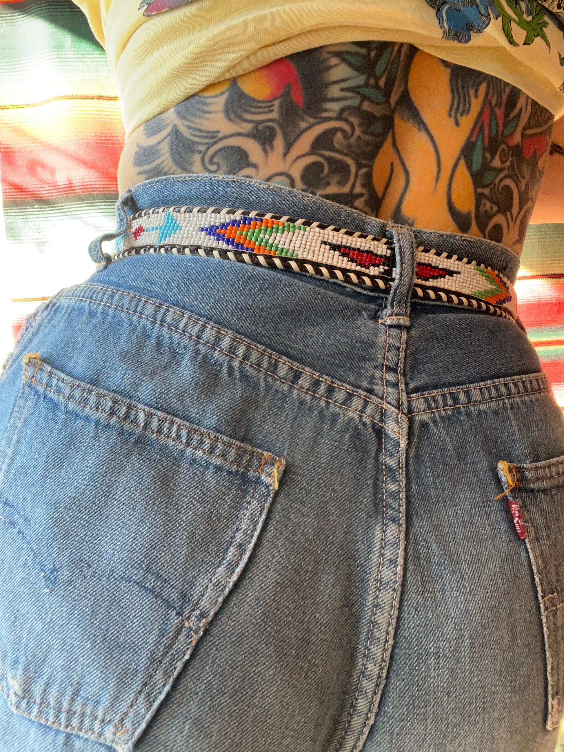34" end to end; fits 27" to 31" waist. and .75" wide